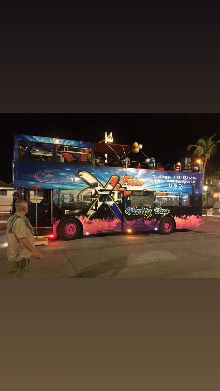Get ready for the Ultimate Party Bus Tour, the most exciting way to explore the vibrant French and Dutch sides of St. Maarten! This thrilling journey combines stunning scenic views, local sites, beach stop, and a lively party atmosphere. Hop on our open-top party bus equipped with all the amenities you need for an unforgettable experience.